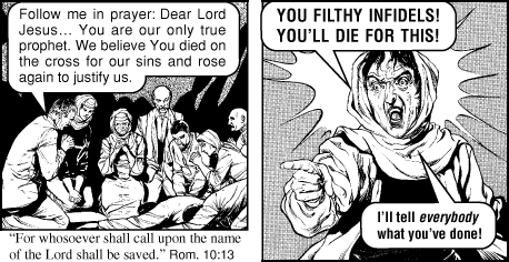 He reached the stage where he could order them to kill, and they killed; and by his orders, they cut the hands and legs off the captives, and buried captives alive. Also, [a fallen angel claiming to be] Gabriel carried down all the needed verses that made it legal for Muhammad to do all [that] he thought necessary. - From Christ, Muhammad & I (2004), p. 10.Ghazoli concluded that Islam was not and could not be the truth. But where was the truth?
